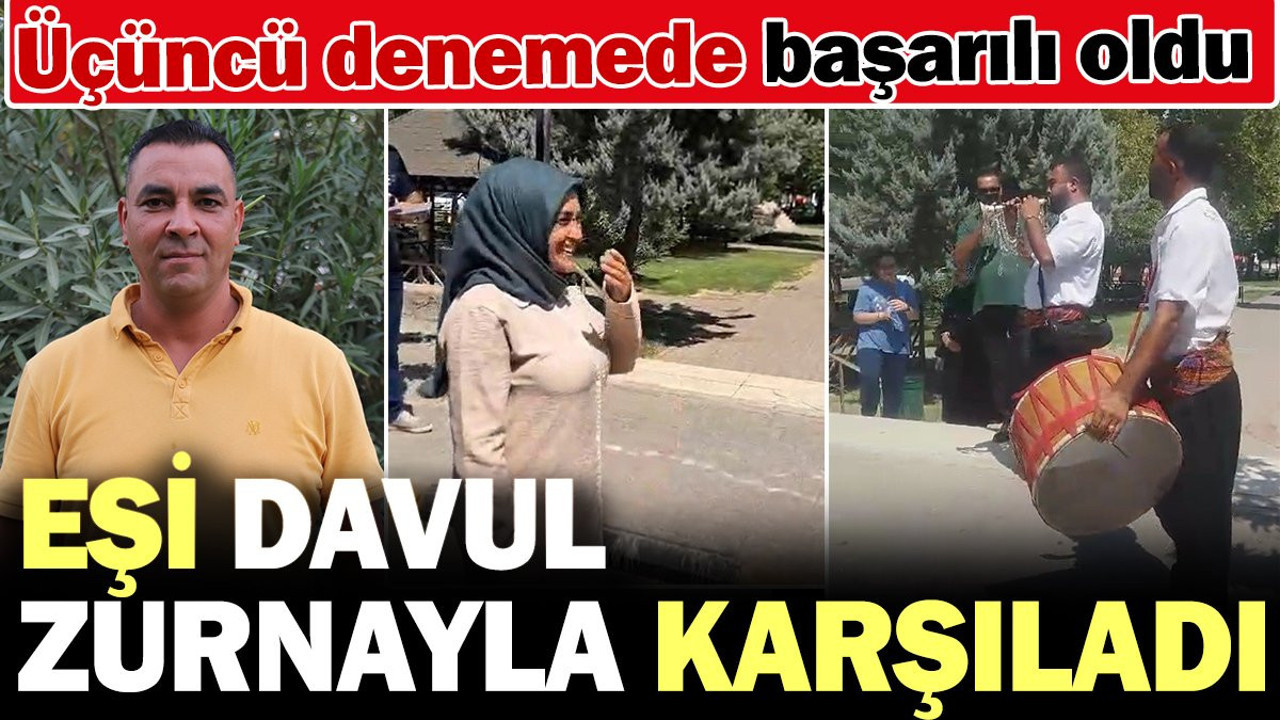 Gaziantep'te direksiyon sınavını geçen kadın, eşi tarafından davul zurna ile karşılandı. Cuma Kılınç, eşinin bu başarısını kutlamak istedi.