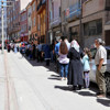"Bugün saat 10.30''da geldim. Daha sıranın arkasındayım. Arkamda 20 kişi var. Önümüzde ise 100 kişiye yakın var. Ben dün de geldim. Saat 12.00''de bitti alamadım. Misafir gelmeyecek ama çocuklar istiyor."