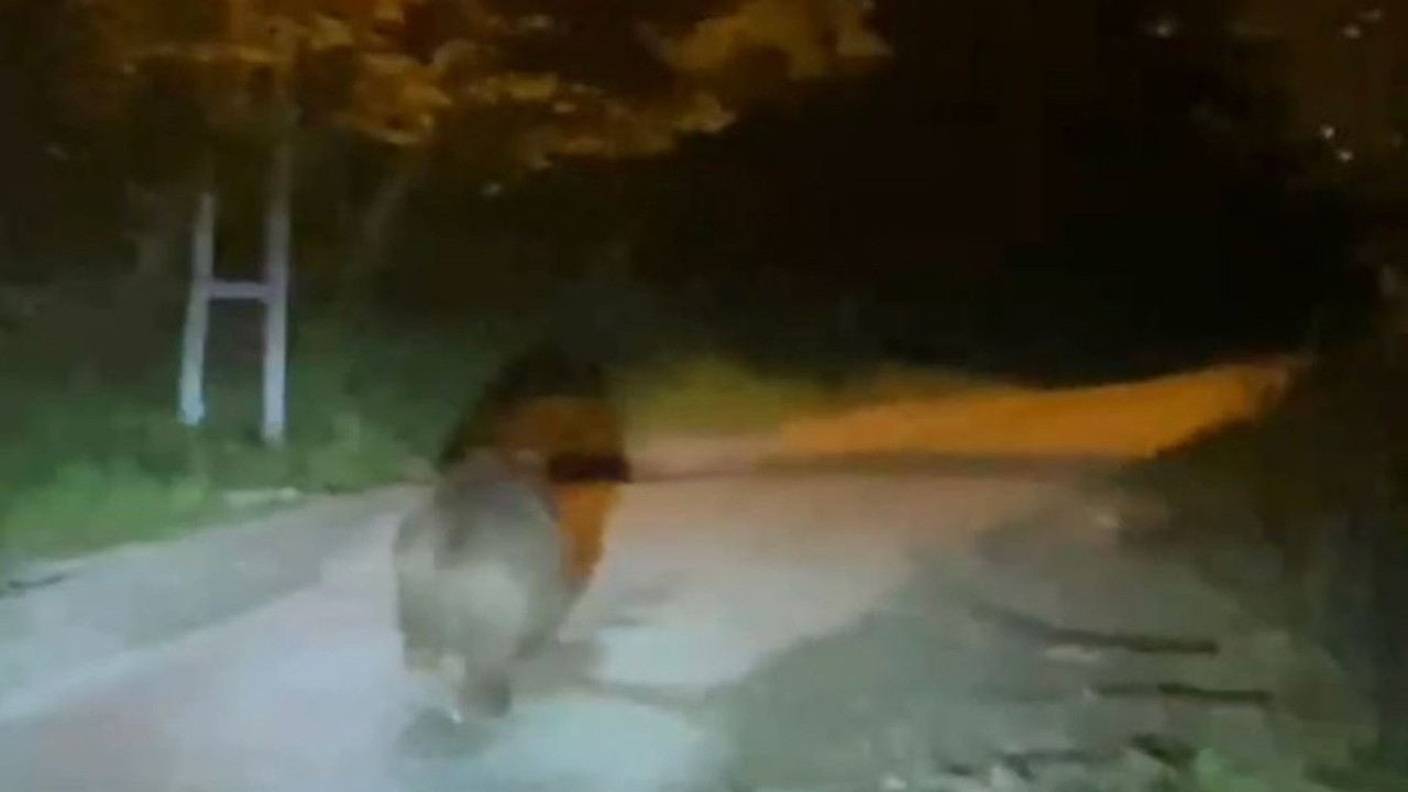 Görüntülerde, bir kişinin ayıya yoldan çekilmesi için bağırdığı duyuluyor.