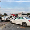 DHA''nın haberine göre, kaza, dün saat 16.45 sıralarında Esenşehir Mahallesi Baraj Yolu Caddesi ve NATO Yolu addesi''nin kesiştiği kavşakta medyana geldi. Kavşaktaki 4 otomobil, panelvan ve servis minibüsü birbirine girdi. 6 aracın karıştığı zincirleme kazada 1''i ağır 8 kişi yaralandı.