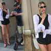 Şahin, daha sonra AVM'nin önünde bir süre oturarak, arkadaşıyla sohbet etti. Model, kombiniyle dikkat çekti.