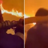 İtfaiyenin hortumunu sırtına ünlü oyuncunun alevlerle mücadele ettiği anlar sosyal medyanın gündemine oturdu.