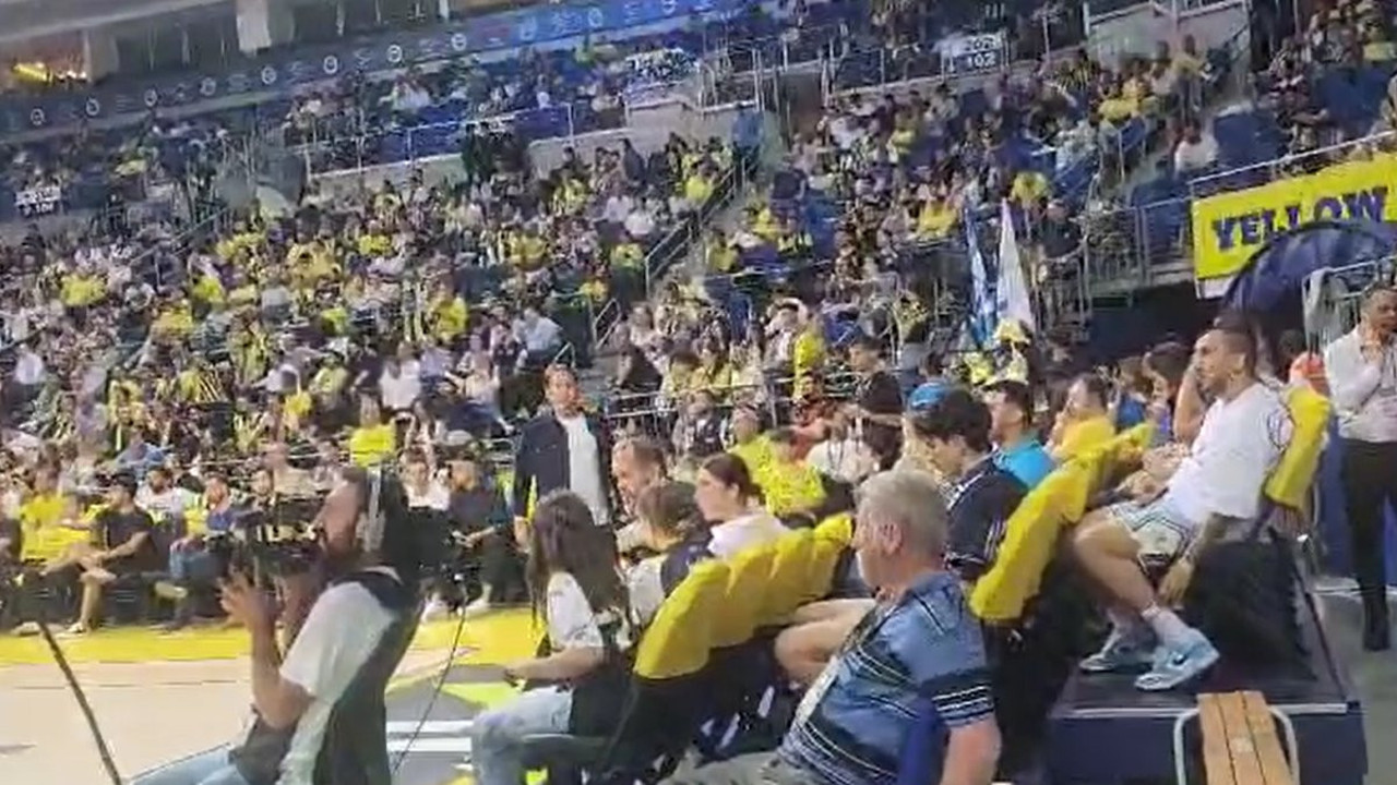Ülker Spor ve Etkinlik Salonu’nda oynanan mücadele devam ederken sürpriz bir isim kameralara yakalandı.