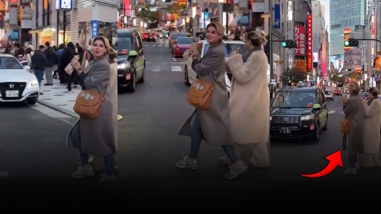 Gülben Ergen, arkadaşıyla birlikte Japonya'nın başkenti Tokyo'ya gitti. İşlek olduğu görünen bir caddede karşıdan karşıya geçmek isteyen Ergen, trafik kuralını ihlal etti.