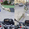 Sürücü, motosikletiyle kaldırıma çıkarak yayaları tehlikeye attı ve birçok trafik kuralını ihlal etti.