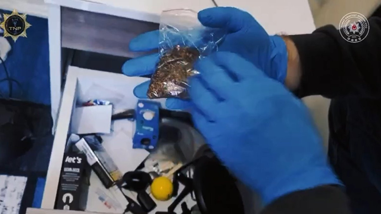 Yapılan detaylı aramalarda, çeşitli uyuşturucu maddelerin yanı sıra 82.36 gram bonzai, 2.93 gram esrar, 2.57 gram toz esrar, 9.04 gram metanfetamin, bir adet sentetik ecza, sekiz kök Hint keneviri, iki adet ruhsatsız tabanca, üç adet şarjör, kırk üç adet mermi ve bir adet ruhsatsız av tüfeği bulundu.