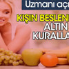 “Ancak kış aylarında mahrum kalınan güneş ışınları, vücudun D vitamini ihtiyacının karşılanamamasına sebep olmaktadır. D vitamini besinlerden aktif olarak karşılanamıyor olsa da balık, D vitamini ile beyin fonksiyonlarının gelişimi için gerekli çoklu doymamış yağ asitleri (omega-3), kalsiyum, fosfor, selenyum, iyot mineralleri ve E vitamini içerir. Bu sebeple kış aylarında haftada 2-3 kez balık tüketilmelidir. Kış aylarında yüksek yağlı besin tüketiminden kaçınılmalı, margarin, tereyağ, yağlı etler, yüksek kolesterol içeren sakatat ürünleri sıklıkla tüketilmemeli, sağlıklı yağ asitleri içeren zeytinyağı, yağlı tohumlar, kuruyemişler uygun ve yeterli porsiyonda tüketilmelidir. Bu mevsimde basit karbonhidrat içeren şekerli besinlere ve tatlılara yönelimin arttığı görülmektedir. Dünya Sağlık Örgütünün önerisine göre günlük şeker alımı toplam enerji alımının en fazla yüzde 10 kadarını oluşturmalıdır ve mümkünse daha da azaltılmalıdır. Sağlıklı hayat biçiminde basit şekerler yerine kompleks karbonhidratlardan olan tam buğday ekmek, bulgur gibi tahıllar, kurubaklagiller, meyveler ve şekeri azaltılmış sütlü ya da meyveli tatlılar ile sağlıklı pişirme yöntemleri kullanılarak hazırlanan ev yapımı ürünler tercih edilmelidir.”