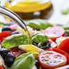 Çok miktarda meyve, yapraklı sebzeler ve zeytinyağı