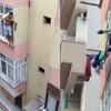 İstanbul Bahçelievler'de intihardan vazgeçince üçüncü katın balkon kenarında mahsur kalan Tunuslu Radhouane Tayarı (33) kurtarmak için itfaiye seferber oldu. Açılan brandaya atlayan Tayarı gözaltına alındı.