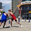 İki Liberal Demokrat Partili, Hamza Yerlikaya'nın atanmasını protesto etmek için Vakıfbank'ın önünde güreşti.