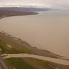 Ahlat-Tatvan yolu üzerindeki 10 kilometrelik hattan dökülen sel sularının ardından Van Gölü kahverengine bürünürken, meydana gelen görüntü ise havadan görüntülendi.
