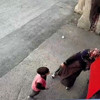 Van'da annesi ile yolda yürüyen çocuk, 29 Ekim Cumhuriyet bayramı nedeni ile asılan bayrağı görünce aniden annesinin yanından ayrılarak bayrağa giderek öptü.