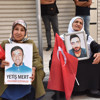 Nöbetteki aileler DEM Parti Van İl Başkanlığının olduğu Menekşe Sokak'ta ellerinde Türk bayrakları ile bir araya geldiler.