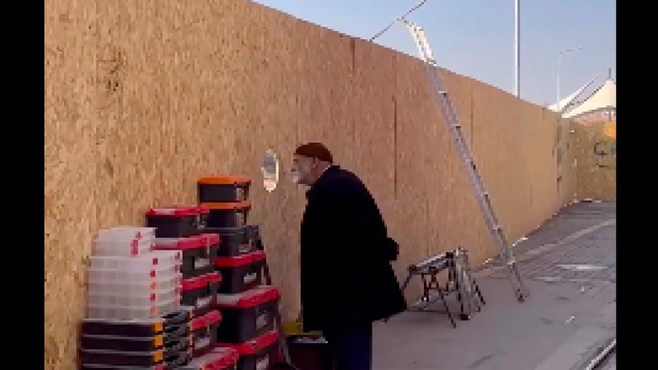 Bir inşaat firması, inşaat izlemeyi çok seven vatandaşlarımız şantiye alanını güvenle izleyebilsinler diye duvara delik açtı.