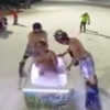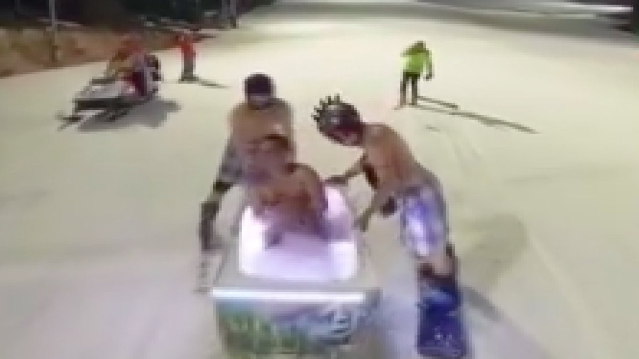 Erzincan'ın kayak merkezlerinden birinde, içi sıcak su dolu büyük bir küvette kayak yapan bir grup vatandaş, hem eğlendiler hem de unutulmaz anlar yaşadılar.