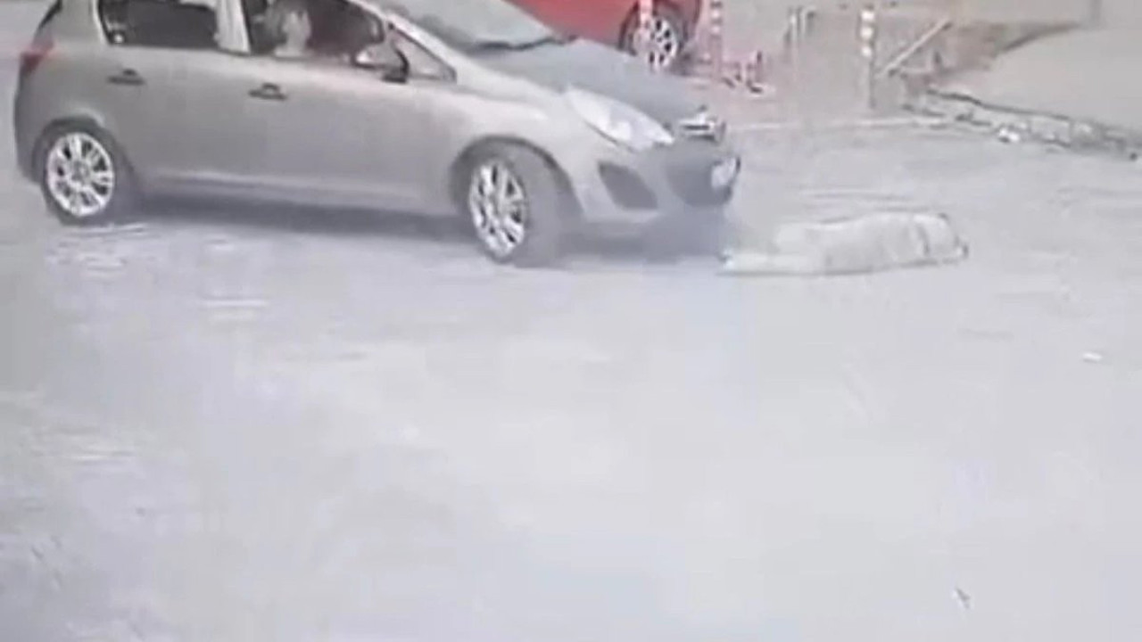 Olay, Peksimet Mahallesi Kadıkalesi mevkisinde yaşandı. İsmi henüz tespit edilemeyen sürücü, boş otoparkta geri geri gittikten sonra otomobilini ileri doğru sürdü. Otoparkta yerde yatan köpeğin ayaklarının üzerinden geçen sürücü, daha sonra arkasına bakmadan yoluna devam etti.