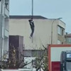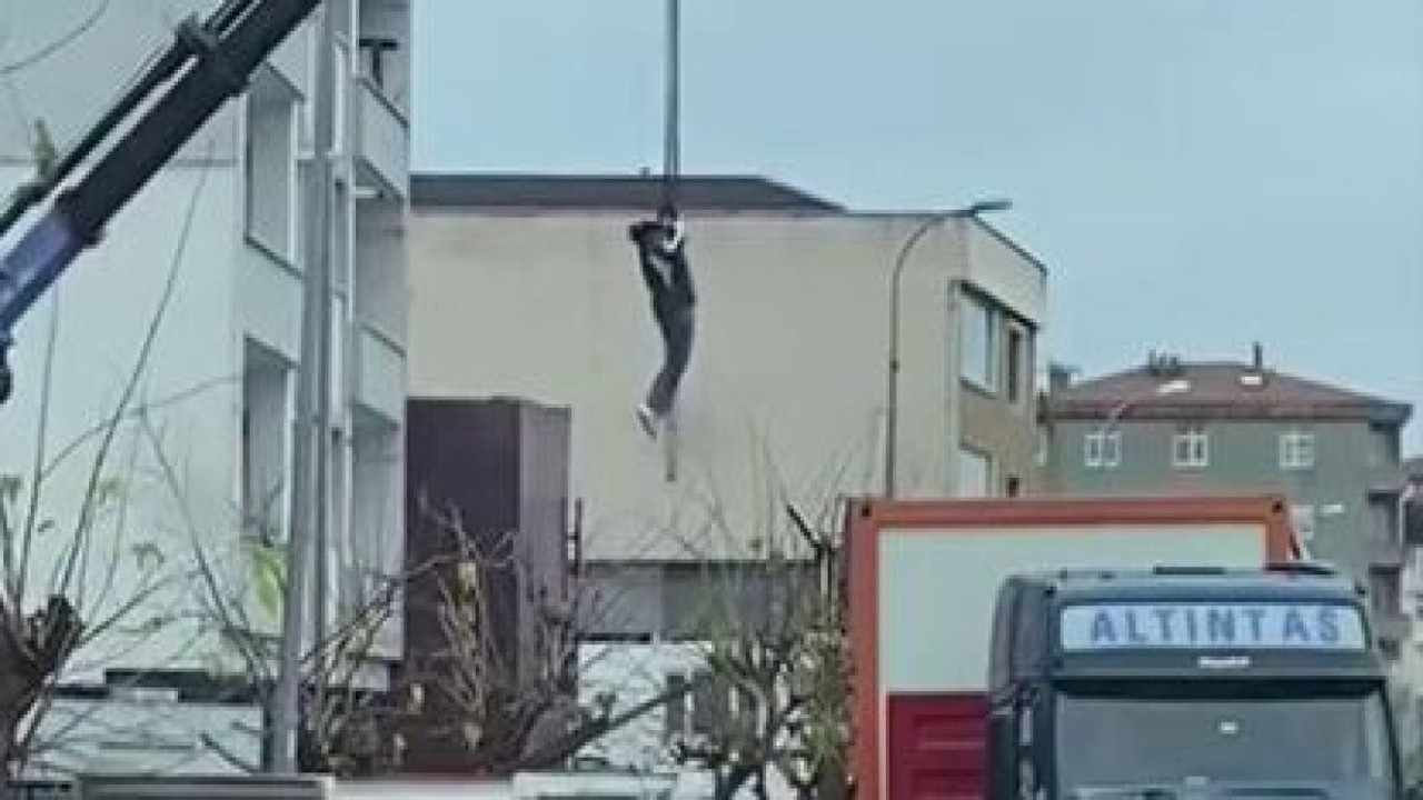 İstanbul Ataşehir Ferhatpaşa Mahallesi’nde bir vatandaş, konteyner taşımak için kullanılan vinç halatına tutunarak metrelerce yükseklikten aşağı indi.