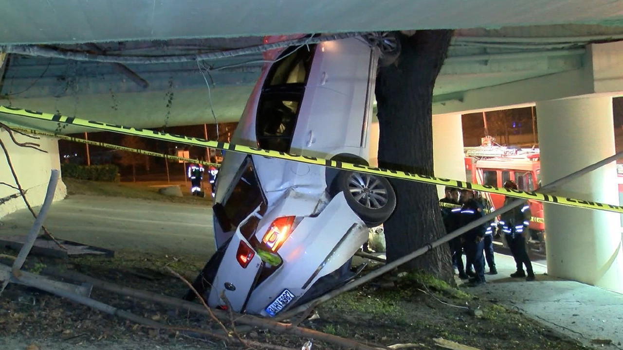 Viyadükten boşluğa düşen otomobil ise vinç yardımıyla bulunduğu yerden kaldırılırken, polis kazayla ilgili inceleme başlattı.