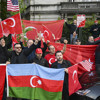Türkiye ve Azerbaycan bayrakları taşıyan Türkler, marşlar ve sloganlarla Ermeni grupları protesto etti.