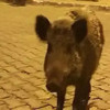 Yaklaşık 10 yaban domuzu, sokaklarda bir süre dolaştıktan sonra gözden kayboldu.