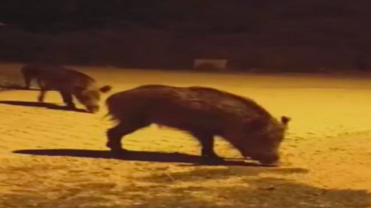 Hatay’ın Defne ilçesinde yem bulmakta zorlanan yaban domuzları, Dursunlu Mahallesi'nde yaşayan Tahsin Altınöz tarafından köpek maması ve yemek artıklarıyla besleniyor. İlçede hayvanların insanlara zarar vermemesi için önlem alan Altınöz, depremin ardından başladığı besleme faaliyetini sürdürüyor. Yaban domuzlarının her akşam beslenmek için Altınöz'ün bölgesine geldiği öğrenilirken o anlar kameraya yansıdı.