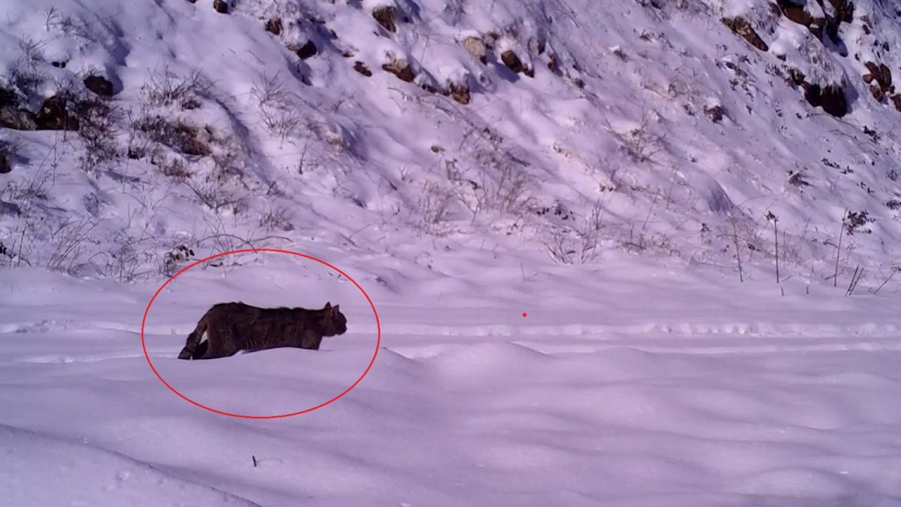 Bu fotokapanlardan birine, Türkiye’nin nesli azalan hayvanlar listesinde bulunan yaban kedisi yakalandı.