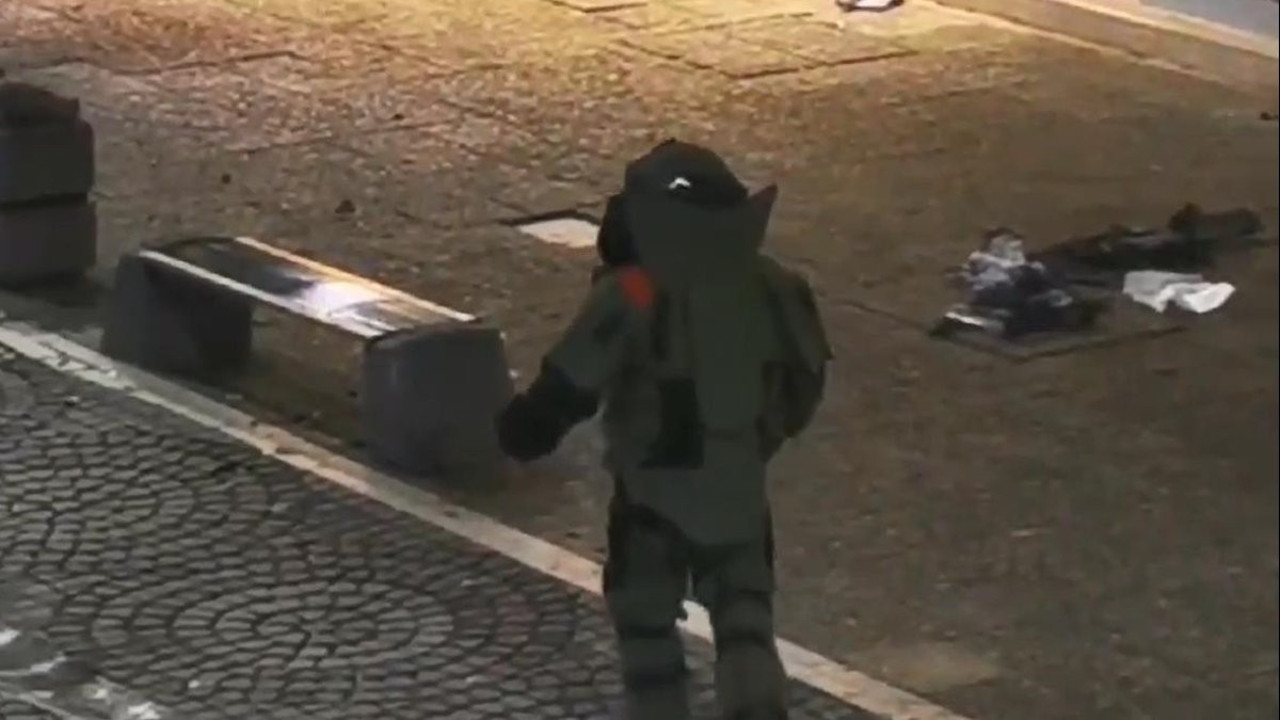 Ardından valiz bomba imha uzmanı tarafından yerleştirilen fünye ile kontrollü bir biçimde patlatıldı.