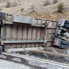 Karayolları ve Jandarma ekipleri tırın yoldan kaldırılarak ulaşımın tamamen açılması için çalışmalarını sürdürüyor.
