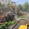 Merkez Mahallesi'nde dün akşam çatı katında meydana gelen yangında büyük hasar gören metruk bina, belediye ekipleri tarafından yıkılırken enkazı da bölgeden kaldırıldı.