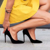 Ucu sivri, yüksek topuklu ayakkabılar giymek, halluks valgus oluşumuna katkıda bulunur ve mevcut deformiteyi arttırır.