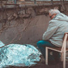 Fotoğrafta, bir dede, Rus roket saldırısı sonucu annesiyle birlikte hayatını kaybeden 9 yaşındaki torununun cesedinin başında bekliyor.