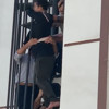 Aile, ekipler gelinceye kadar oğullarının düşmemesi için çarşaf ile onu demir korkuluklara bağlayarak tutmaya çalıştı. İtfaiye ekipleri olay yerine geldiğinde uzun uğraşlar sonucunda demir korkulukları keserek adamı kurtarmayı başardı.