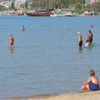 Termometrelerin 30 dereceyi gördüğü kentte yerli, yabancı turistler denizde yüzdü plajlarda yaz aylarını aratmayan görüntüler yaşandı.