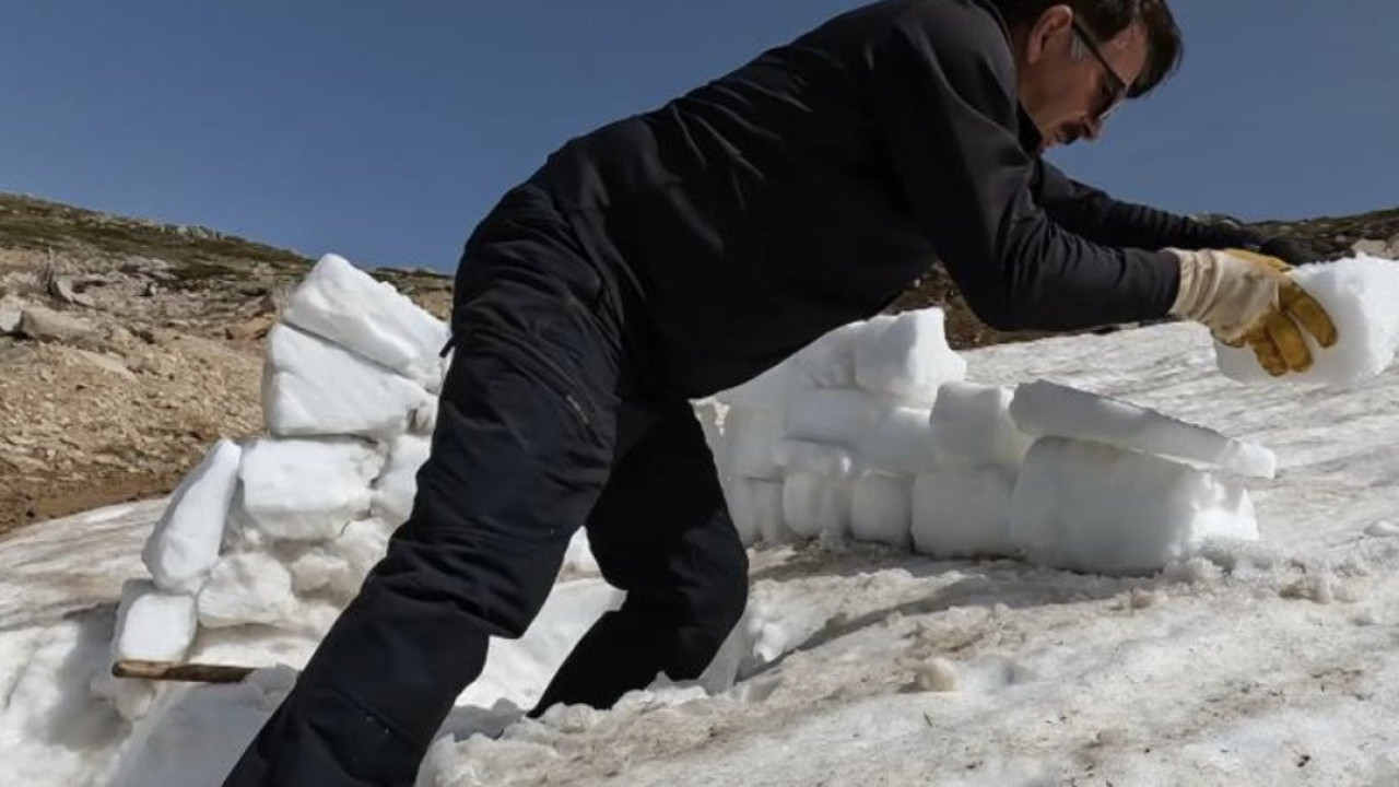 Dağcılar, sertleşen kar tabakasını testere ile küçük tuğlalar haline getirerek kendilerine iglo dinlenme köşesi yaptı. Dağcıların bu macerası, yazın sıcak havalarında izleyenlerin içini serinletti.