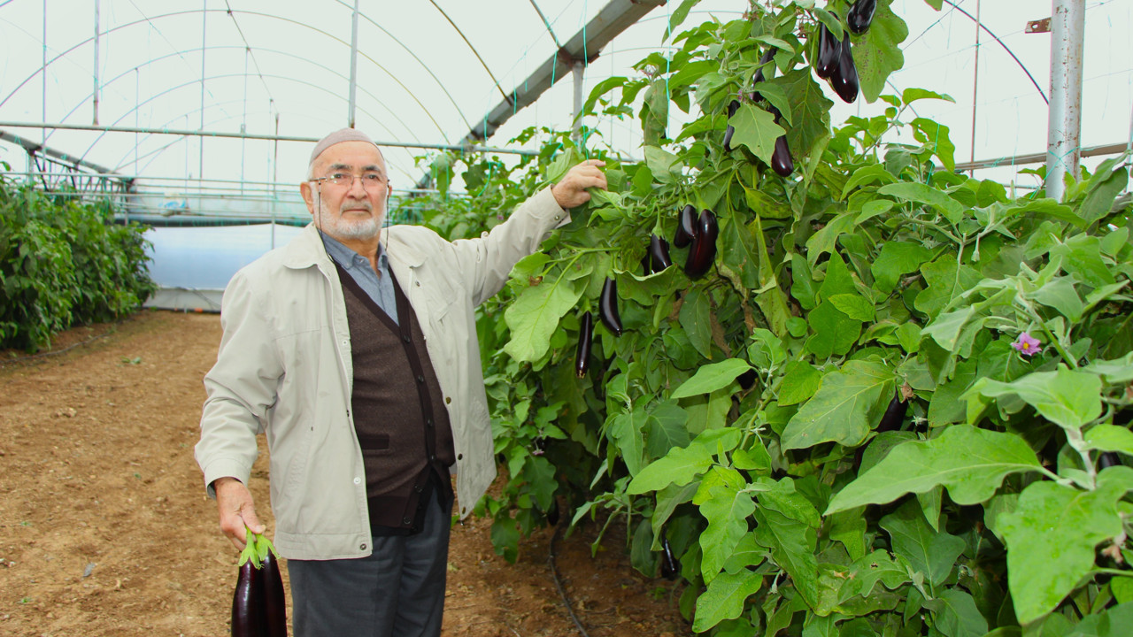 Domates ve patlıcanları yaz boyunca yetiştirip sattı. Yaz sonunda ömrünü tamamlayan domates bitkilerini söken deneyimli çiftçi kilosunu 5 liradan sattığı patlıcanları hava şatlarının da etkisiyle ürün vermeyi sürdürdüğünü görünce sökmedi.