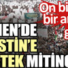 Yemen’in Taiz kentinde, İsrail’in Gazze saldırıları on binlerce kişinin katılımıyla protesto edildi. "Filistin Davasının Zaferi Halk Komitesi”nin organize ettiği etkinlikte toplanan Yemenliler, Gazze’deki zulme tepki göstererek İsrail aleyhine sloganlar attı.