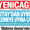Yeniçağ Gazetesi'nin bugünkü manşeti...