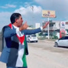 Amaç, sırtında Filistin bayrağıyla yolda yürüyerek araçlardan korna çalmalarını istedi.