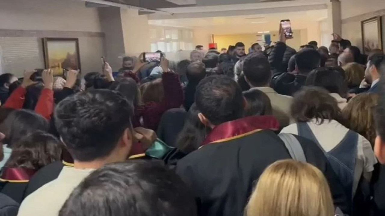 Duruşmanın görüleceği Konferans Salonu önünde bekleyen avukat ve yurttaş kalabalığı, bir türlü salona alınmadıkları için tepki gösterdi. Kalabalıktan 'Avukata değil çeteleri barikat' sloganları yükseldi.