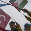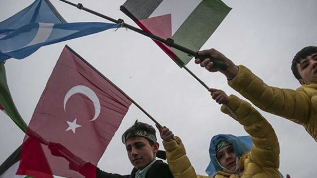 Mitinge, ellerinde Türk bayrağı ve Filistin bayrağı taşıyan çok sayıda vatandaş katıldı.