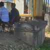 Hava şartlarının tahrip ettiği lahit, aynı zamanda bölgede bulunan bir taksi durağının da bir parçası haline geldi. Vatandaşlar, lahidin dibine koydukları masa ve sandalyede oturup, zaman geçiriyor.