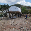 İHA’da yer alan habere göre, Hassa'nın Söğüt Mahallesi'nde kırsal alanda bulunan inşaat halindeki yapının üzerinde bulunan çadırı görenler şaşırıyor. İlginç bir görüntü oluşturan çadırı kuran Turhan İlkbahar'ın yaşanan deprem sonrasında evleri yıkılmış. Deprem sonrasında çadırda yaşamaya başlayan Turhan İlkbahar, yaz aylarının gelmesiyle yılan ve zehirli haşerelere karşı çadırını bir yapının üzerine kurdu.