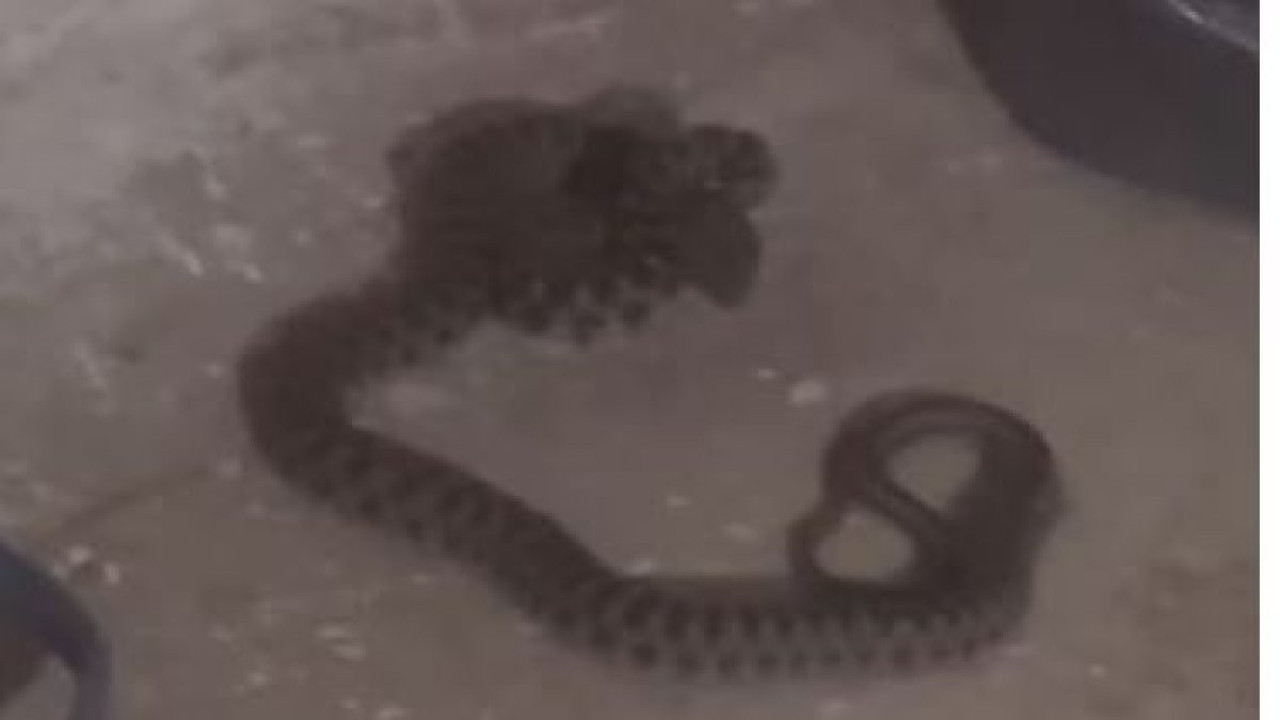 Çaydaçıra Mahallesi'nde bir kadın, evinin bodrumundaki yılanı fark etti. Bunun üzerine kadın, cep telefonu kamerası ile kayda girdi.