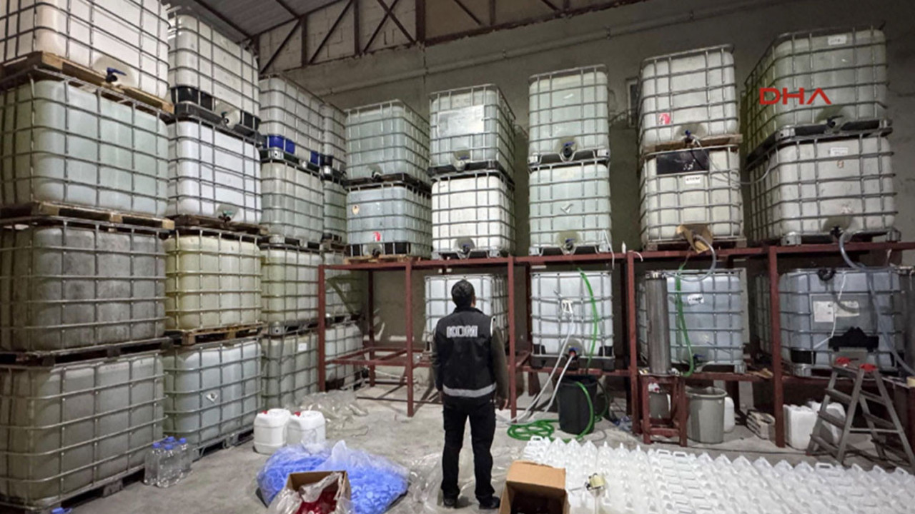 Antalya’da sahte içki imalathanesine düzenlenen operasyonda, 28 bin 340 litre etil alkol ve içki yapımında kullanılan malzemeler ele geçirildi, 14 şüpheli ise gözaltına alındı.