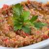 - Soğan ve ezilmiş patlıcanları, ince doğranmış domatesleri ve maydanozları derince bir kapta karıştırın.
