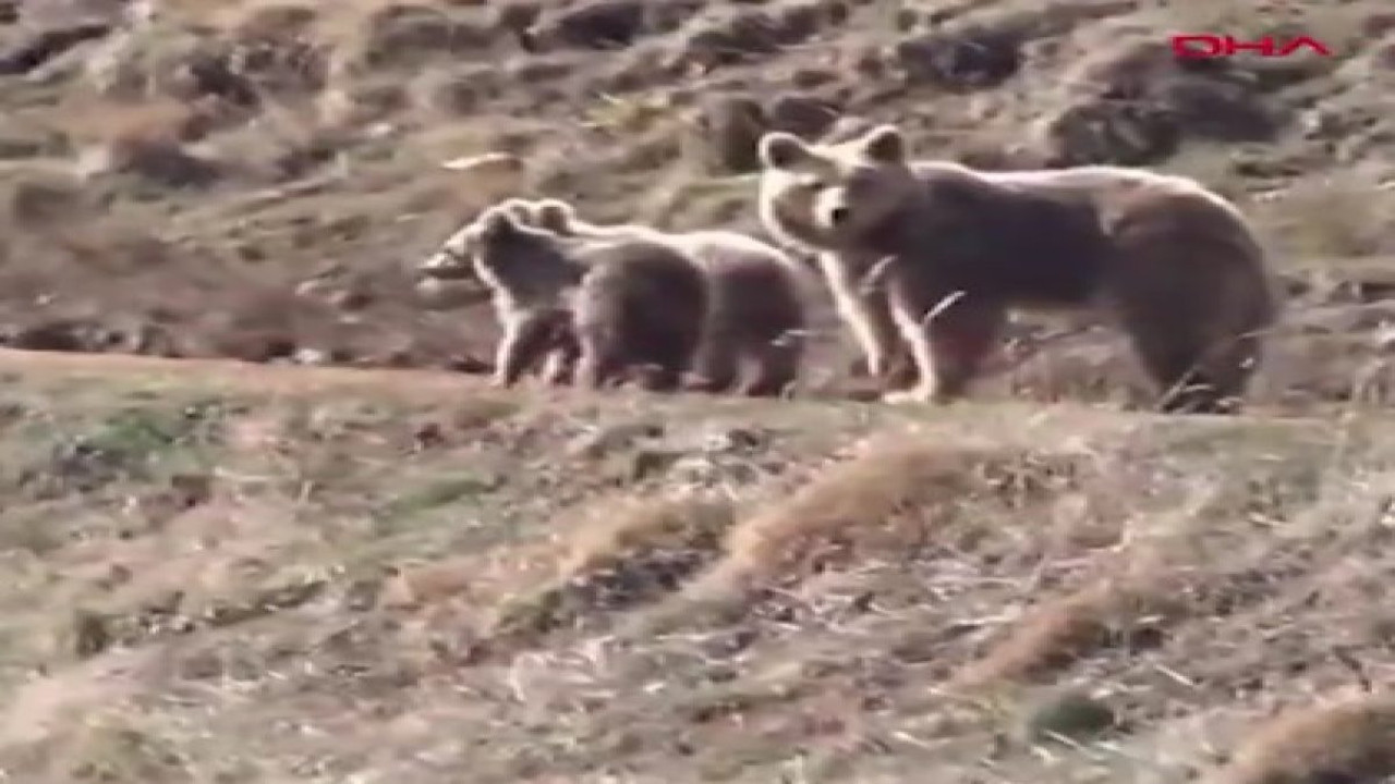 Bölgede gezinerek bir süre yiyecek arayan anne ayı ve iki yavrusu, bir süre sonra uzaklaşarak gözden kayboldu.