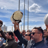 Basın açıklamalarının ardından mühendisler, baretlerini havaya kaldırarak mühendislik yeminlerini ettiler.