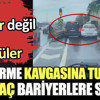 Sabırsız sürücüler, birbirlerini beklemeyince iki araç, bariyerlere sıkıştı.