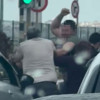 Taraflar birbirine tekme ve yumruklarla saldırırken, durumu gören trafikteki diğer araç sürücüleri ikiliyi ayırmaya çalıştı.