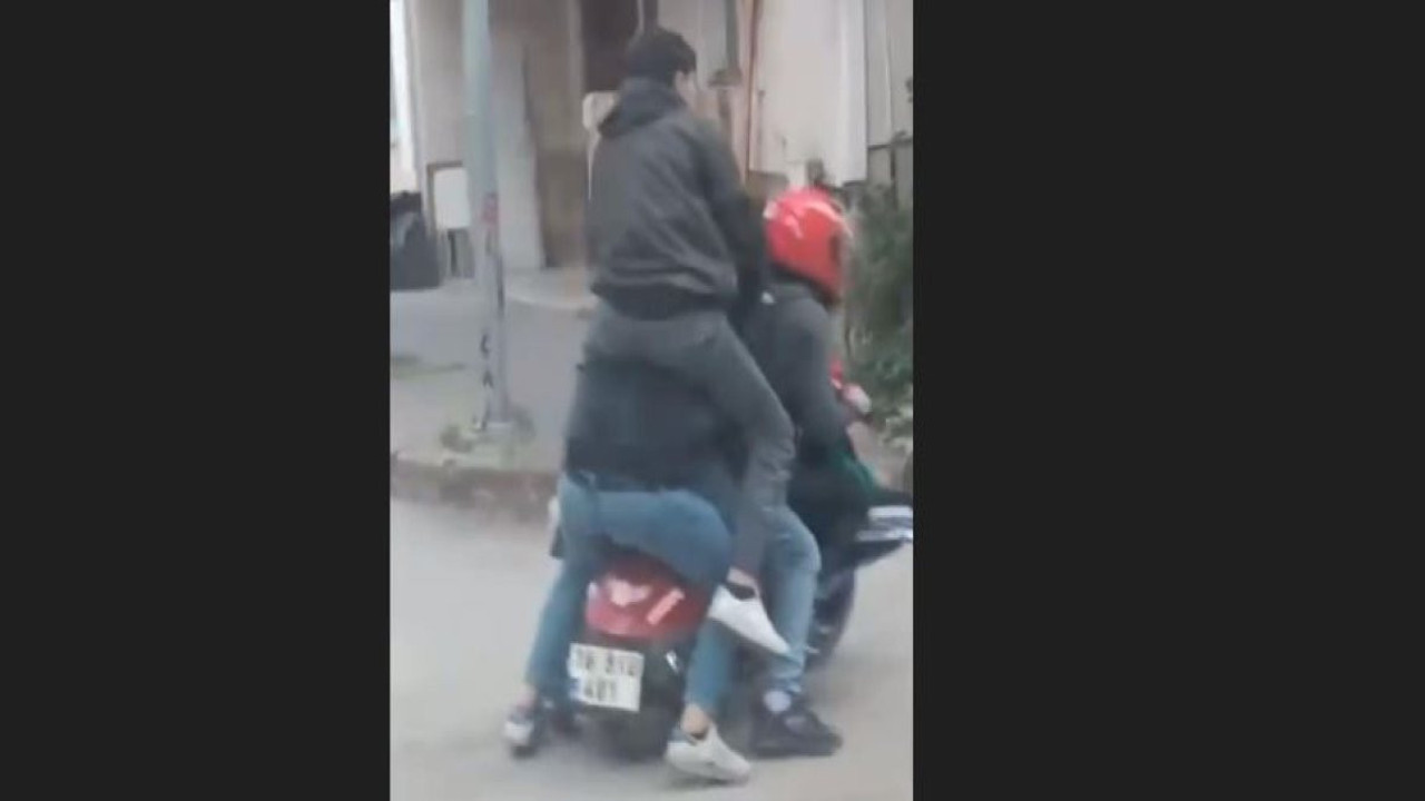 Olay, İnegöl ilçesinde meydana geldi. Motosiklet tutkunu 4 genç iki tekerlekli araca sığmak için üst üste çıktı.